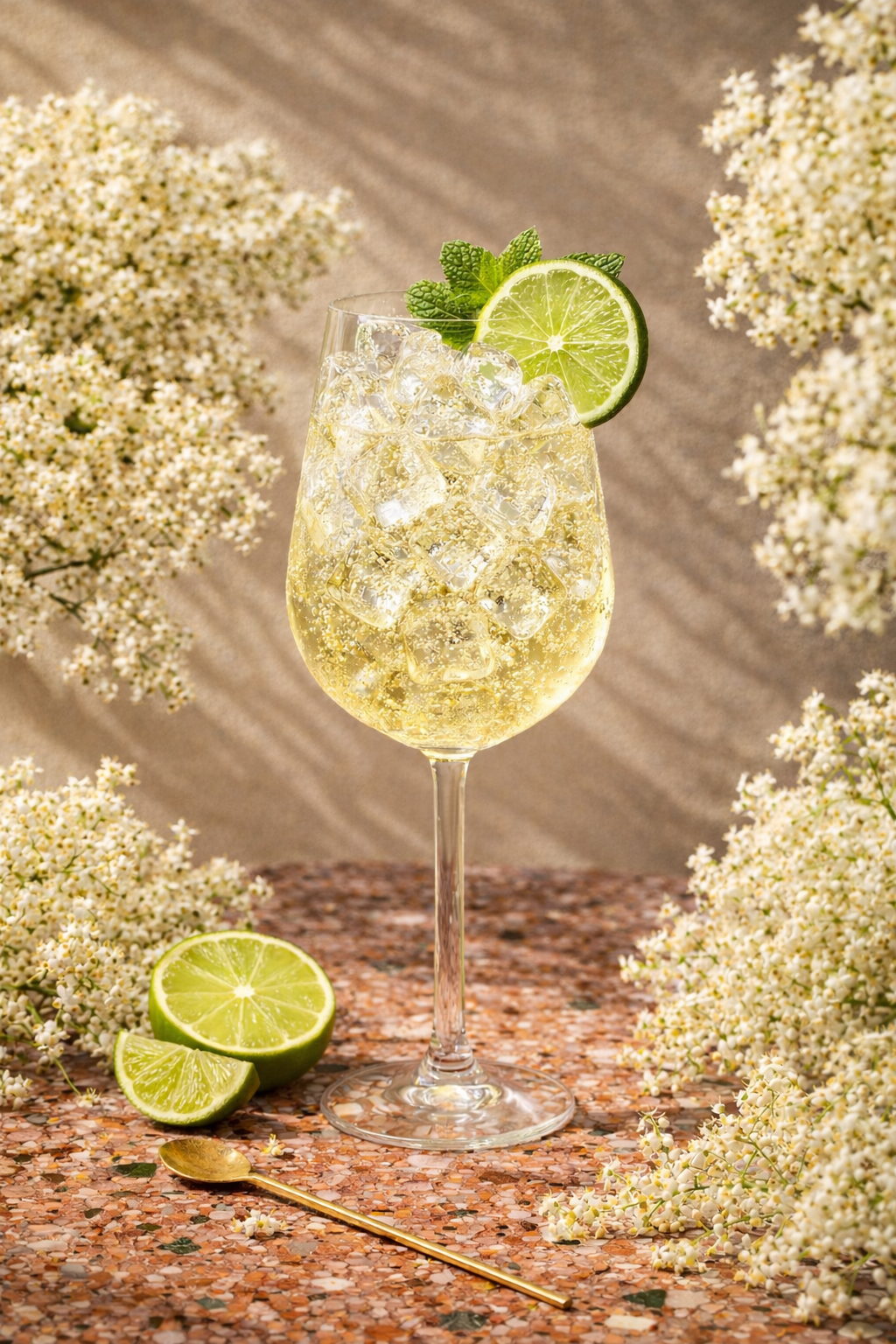 Made with whole ingredients and never any additives, our spritzes are bursting with flavor, yet delightfully refreshing. We offer a take on the Hugo Spritz, and a bright and floral Cherry spritz.